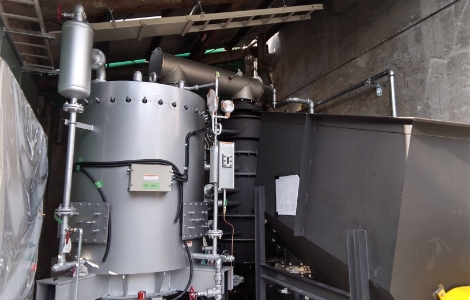 食品会社 岐阜県関市 蒸気ボイラ 食品加工 2017年3月 木チップ 1t/h ×1台